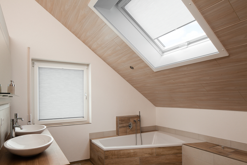 Plissee Duette mit Perlex Beschichtung auch als Sonderform für außergewöhnliche Fensterformen und Dachfenster bieten Plissee-Vorhänge die maßgeschneiderte Lösung, da sie sich überall perfekt anpassen. Dabei tritt die Plissee-Vorhang-Technik gekonnt in den Hintergrund und unterstreicht die optische Wirkung des Behangs.